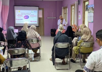 Kegiatan dibuka dengan suasana hangat oleh dr. Frili sebagai moderator acara, dan berlangsung interaktif melalui sesi tanya jawab. Peserta tampak antusias dan aktif berdiskusi seputar pengalaman dan pentingnya pemeriksaan kesehatan berkala.